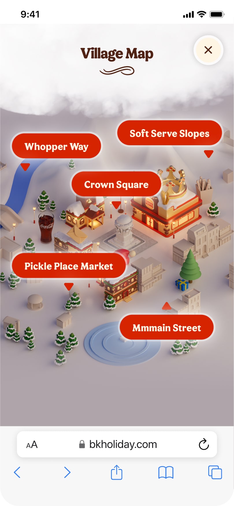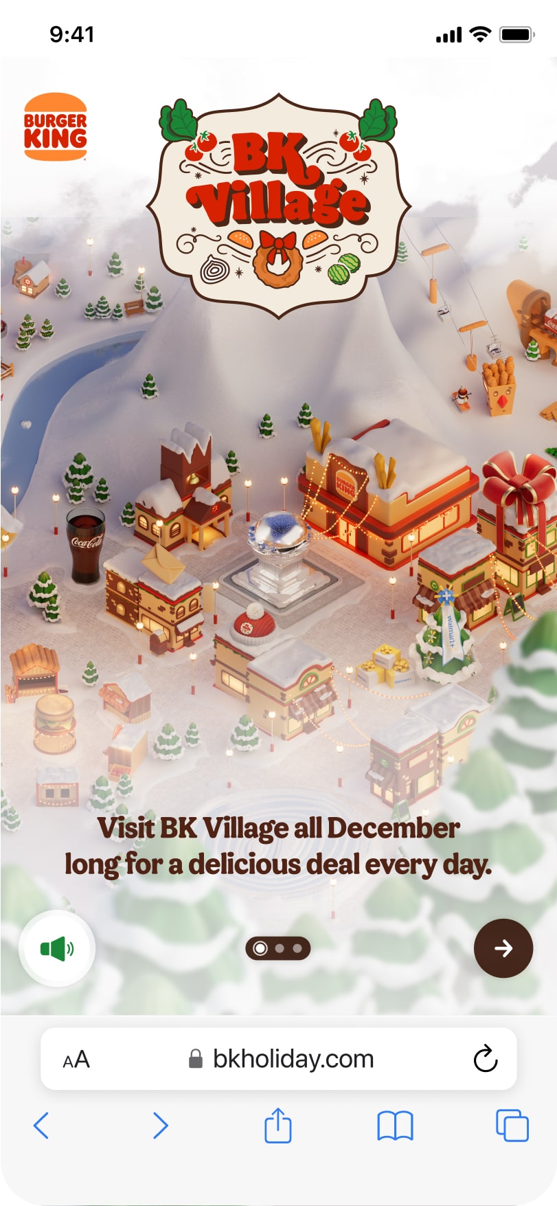 For the 2024 holiday season, I helped turn a playful creative concept into a rich, return-worthy digital experience for Burger King. Part advent calendar, part virtual destination, 'BK Village' aimed to drive repeat visits and deepen brand engagement during the busy holiday season.
